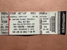 Concert Ticket Stub. Fall Out Boy - Save Rock & Roll Tour. Fox Theater in Oakland, CA. June 16 2013, GA.