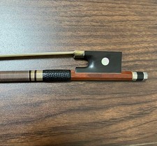 This exquisite Dominique Peccatte model bow, crafted by a la Corde, carries on the proud tradition of French bow making. The round stick shape and silver & ebony frog enhance its classic aesthetic and playability.