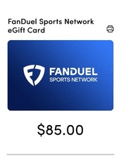 $85 Fanduel Sports Network E-gift card. This is not for the Sportsbook/casino. It was accidentally bought as a present, but I do not utilize the service. Offering for less than face value, hoping someone can use it. This is an E-card, so we would need to get in touch so I can send you the activation/authentication code.