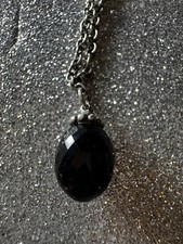 Trollbeads Fantasy necklace with black onyx in sterling silver. Trollbeads Fantasy Necklace featuring a faceted black onyx gemstone on a long sterling silver chain. The elegant “fantasy” style necklace is designed without a traditional clasp, creating a seamless drape.