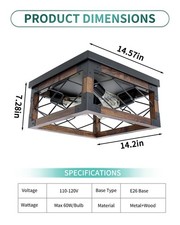 Farmhouse Flush Mount Ceiling Light Fixture, 4-Light Close to Ceiling Light w...