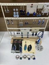 Fashion jewelry mixed lot Earrings Rings Charm pendants Last two rings pictured are adjustable Blue lace agate ring is heavily tarnished