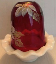 Fenton Cranberry Floral Fairy Lamp 2 piece 4.5” Tall Signed Hand Painted