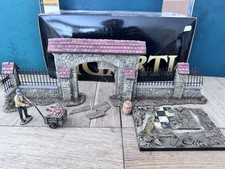 Generally fair condition (doors broken, one fence detached, a few small chips. The set infludes an additional piece of damaged building from another set. In the original box. Apparently quite rare, and an exquisite model that displays well even without the doors 54mm scale Metal and resin model. See photos for additional details. Happy to entertain offers and combine shipping on multiple item purchases. Please see my other auctions Please note that all items will ship on the first Friday following their purchase.