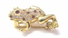 Fine 18Kt Gem Ruby Diamond Yellow Gold Frog Pin/Brooch additional preview