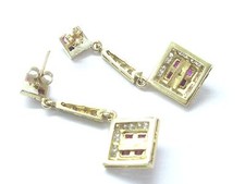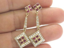Fine Gem Ruby & Diamond Dangling Yellow Gold Earrings 2.44Ct additional preview