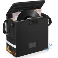 Fireproof Vinyl Record Storage Box, Record Storage Organizer with Lock Firepr...