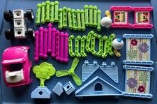 Used condition. Includes all shown, 47 pieces in all. Magenta and light green sticks, panels/windows, lt blue parts, a pink car…see pictures. These are not the more common red/orange/lime. The green sticks are a lighter green and not the more common lime colored parts. These have been unused in a bin for several years and were not cleaned or sanitized. Ships in a bubble mailer. Weighs 1 pound, 2.5 ounces before being packed. Smoke free, pet friendly home.