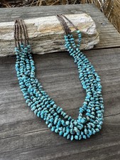 Five Strand Turquoise And Heishi Bead Necklace With Sterling Ends
