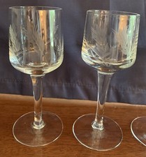 Five Vintage Mid Century Modern Etched Glass Wheat Design Cordial Wine Glasses
