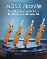FLASHFORGE AD5X Hardened 0.6mm Nozzle, High Flow 32mm³/s Hotend Kit, High-Speed 3D Printer Part. Material-Specific Options – 0.25 mm and 0.4 mm nozzles are ideal for PLA, PETG, and ABS. 0.6 mm and 0.8 mm hardened steel nozzles resist wear, perfect for carbon fiber, glass fiber, and other abrasive composites.