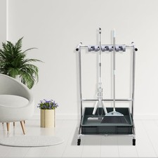 Floor-Mounted Mop Rack Broom And Mop Holder Movable Floor Standing Cleaning Tool