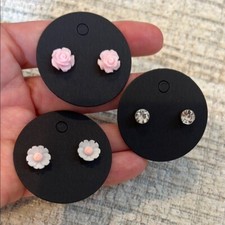 Adorable kids earrings set featuring charming pink and white floral designs and sparkling crystals. Perfect for adding a touch of fun and elegance to any outfit. Free gift with purchase!