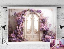 Floral Arch Photo Backdrop Fresh Flowers Background Retro Door Elegant 7x5 ft