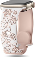 Compatible with Apple Watch sizes: 38mm, 40mm, 41mm, 42mm, 44mm, 45mm, 46mm, and 49mm. Floral engraved design adds a stylish touch. Soft silicone material for comfort and durability. Compatible with iWatch Series 11-1 SE/Ultra 2 3.