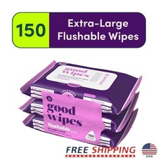 Flushable Butt White Wipes Lavender Scented Biodegradable 150 Count Soft Strong