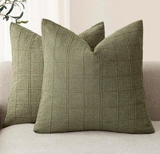 These square pillow covers feature a checked pattern and are made from a blend of polyester and linen, making them durable and easy to care for with machine wash instructions. The sage green color adds a soothing touch, perfect for various rooms like the bedroom, living room, or office.