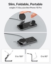 Premium high-gloss housing. The LED indicator light is weak while charging and won't disturb your sleep. 【Adjustable and Space-Saving】 Featuring a foldable, slim, space-efficient design with angle-adjustable phone and watch charging modules,this mag-safe charging station allows you to find better viewing angle.