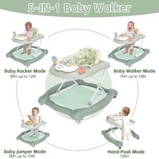 5 in 1 Foldable Baby Walker,Activity Baby Walker-Baby Bouncer,Rocker,Activity Center,Seat and Push Walker,Detachable Footrest Mat,Adjustable Speed Rear Wheels and Height,Ages 6-18 Months (Light Green).