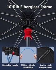 Featuring 10 high-toughness fiberglass ribs, it ensures enhanced stability without cracking while remaining lightweight. When folded, it fits into the included storage bag, making it compact and convenient for any storage space in your vehicle.