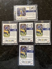 This is a lot of 5 Kyren Williams Autographed rookie cards. These cars are all 2022 panini contenders football cards. 1- Showcase Blue #229. 1- Silver Optic 184. 1- Green Pulsar #229. 1- White #229.