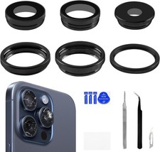 For iPhon 15 Pro Camera Lens Glass with Frame Replacement Back Rear Camera Lens