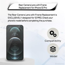 For iPhone 12 Pro Camera Lens Glass with Frame Replacement Rear Camera Back