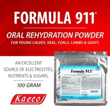 Formula 911 Suspendable Broth A blend of ingredients as a source of electrolytes, nutrients and sugars for energy in young calves, veal, foals and lambs. High energy that is released in a timely manner. Gentle fiber, vitamins, trace minerals, enzymes, naturally occurring microorganisms and other nutrients to provide for immature animals. Ingredients of Formula 911: Vitamin E Sodium Potassium Magnesium Lactic Acid Bacteria Formula 911 Suspendable Broth can be fed by: bottle pail feeding drenching Mix 2/3 cup (100 gm) into 2 quarts warm water/or milk replacer, shake or mix thoroughly. See label below for dosing directions. View manufacturer and/or label information.