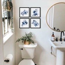 Framed Bathroom Wall Decor, Navy Wall Art with Black Frame and Watercolor Blue