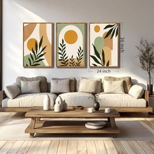 Framed Boho Sun Canvas Wall Art Set of 3, 24"L x 36"W A02 Boho with Frame