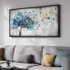 Framed Large Tree Wall Art, Blue and Gold Abstract Tree 40"L x 20"W Blue Gold