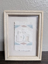Framed Mixed Media Textile Collage Folk Art Building Original Small