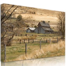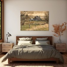 Framed Rustic Farmhouse Wall Art Vintage Barn Wall Art Country Field Landscap...