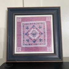 Framed Small Tapestry Textile Art Fiber Artwork Purple Geometric Pattern