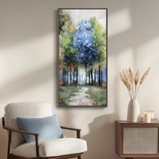 Premium Canvas Print: Printed on premium canvas with high-resolution printing technology, this vertical forest landscape artwork showcases rich colors and fine details. The vibrant tree and path scene creates a peaceful focal point in any room.