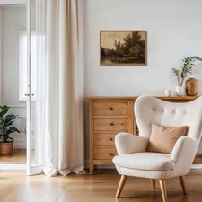 Framed Vintage Landscape Wall Art Forest Lake Swamp Natural Pictures Moody Wi...