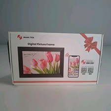 Frameo 10.1 Inch WiFi 102K Digital Picture Frame, 1280x800 HD IPS Touch Screen Brand new open box digital picture frame. Contents never taken out of the box, except for user manual, included. Multifuture settings including touch screen, multi-user connection, fit to frame fill frame, transfer photos videos via app or micro SD card. Ability to adjust photos, auto rotate, desk or wall mount option, set languages in time zone, show or high photos, delete photos, import export photos via micro SD card, sleep mode, timer, ability to display or hide subtitles, clock and weather widgets and more!