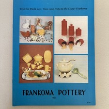 The Frankoma Pottery 1981 Catalog is a vintage paperback catalog featuring illustrated pottery pieces from the Frankoma brand. Released in 1981, the catalog showcases a variety of pottery items produced between 1980-1989. With 27 pages of high-quality images and descriptions, this catalog is a valuable resource for collectors and enthusiasts looking to explore the unique and artistic pottery creations of Frankoma in the 1980s! From the estate of a Frankoma dealer, catalog stamped accordingly.
