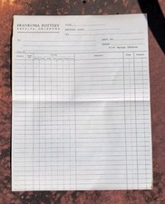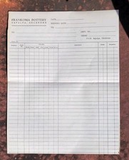 This blank Frankoma receipt was folded in half, as shown in the pictures and with other paper ephemera. It is a full-size sheet with no writing, marks, or tears. Buyer to pay USPS Ground Advantage shipping. Payment must be received within 72 hours of purchase. Package will ship within 72 business hours of receiving payment. Look at all of the pictures as they are an important part of the description. Ask any and all questions as you are buying as you see it.