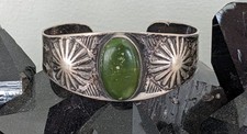 Offered for your consideration is an old Fred Harvey era stamped silver cuff bracelet. It is in very good overall condition with some scuffs and scratches consistent with age. The width at its widest point is 1" with an interior diameter of 2 1/4". It weighs 26.46 grams. Add this unique handcrafted cuff bracelet to your collection at the buy-it-now or feel free to make an offer!