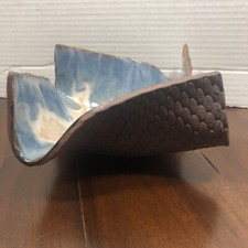 Freeform Pottery Dish Folded Square Drip Effect Mermaid Scales Signed CS additional preview