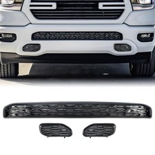 Front Bumper Lower Grille Compatible with 2019-2024 Dodge Ram 1500 with Left Right Side Tow Hook Cover Cap. 【Compatibility】The front lower grill is compatible with RAM 1500 2019-2024. Replace part number: 68274572AA, 68414296AA, 68274704AB, 68274704AA.