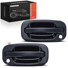 Front Left & Right Pair Outside Exterior Door Handles Compatible with Chevy Silverado, Tahoe, Suburban, Avalanche & GMC Sierra 2500, Yukon XL & Cadillac Escalade, Smooth Black, with Key Hole.