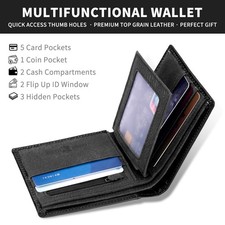 Full Grain Leather Bifold Wallet, RFID-Blocking with 10 Slots (Black, Stars),...