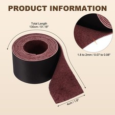 What is this?This is a blank leather strap of full-grain cowhide leather with a distinctive texture, designed for DIY leather working projects, suitable for crafters, hobbyists, DIY enthusiasts, and repairmen. Use it to create a custom belt, tool handle wrap, leather handles for bags, leather hat strap, leashes, collars, keychain ornament, braiding crafts, and many other handmade leather projects.What will I get?Cowhide LeatherMaterial: Natural LeatherColor: PurpleLength: 130cm / 51.2inWidth: 4cm / 1.6inThickness: 1.8 to 2mm / 0.07 to 0.08inIn the package of: 1 x Leather Belt BlanksAre there any advantages to the product?The vegetable-tanned leather strap, crafted from quality top-grain cowhide, not only retains the natural grain and strength but also results in a material that is durable, breathable, and easy to dye.