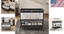 Full-Mesh Baby Bassinet with Drop-Down Side & Adjustable Height for Easy Care