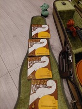 The violin shows slight signs of use but remains in overall clean condition. There is a small scratch as shown in the ninth photo, which is not very noticeable. Included accessories are a bow and spare strings.
