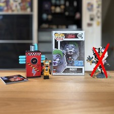 If you have any questions, please message me. i’m open to offers, just message me! Thank you! :) PLEASE READ BELOW: *Before i decided to sell these, Glitchtrap’s eyes were painted purple by me. I felt it was more accurate to his eyes in the game. * The shelf i made is 7” x 12” and comes with everything that’s on it. Also, it has a sawtooth hanger in the back for easy hanging, or just stand it up as is in the picture. *Funko Bitty Pop Gold Nightmare Freddy FNAF Chase 1/32 *All of these items are from my personal collection and have been displayed only. Pet free / smoke free home.