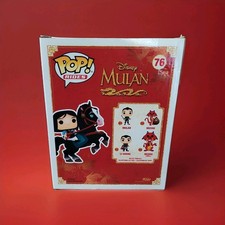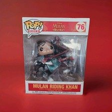 The product is a Funko Pop! vinyl figure featuring Mulan riding Khan from the Disney movie Mulan. This 6" figure is part of the Pop! Rides collection, released in 2019. The item comes in its original packaging and is a very nice collectible for fans of Disney and Mulan.