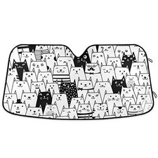 Funny Cat Car Windshield Sun Shade Cute Black White Kitty Animal Foldable UV Ray Sun Visor Protector Sunshade to Keep Your Vehicle Cool (55" x 27.6"). THE PERFECT GIFT: This beautifully designed car sunshade is the best car gift for people who like car accessories or have children or pets who need sun protection.